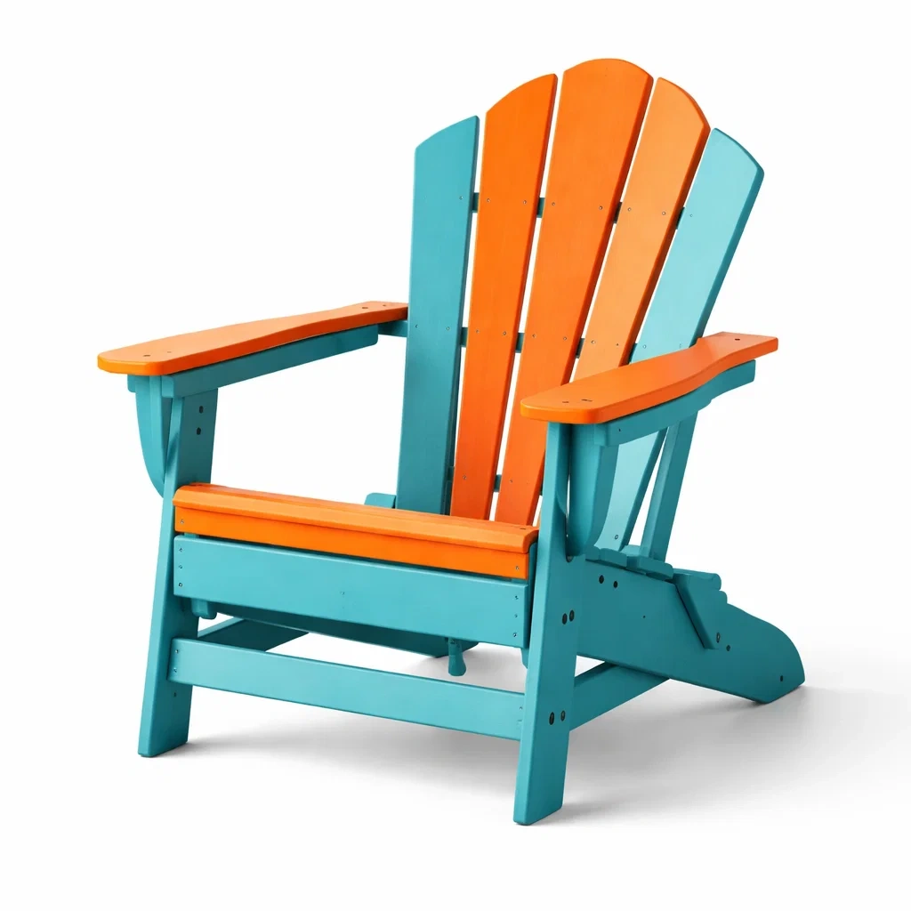 Chaise adirondack en bois bleu et orange pour extérieur