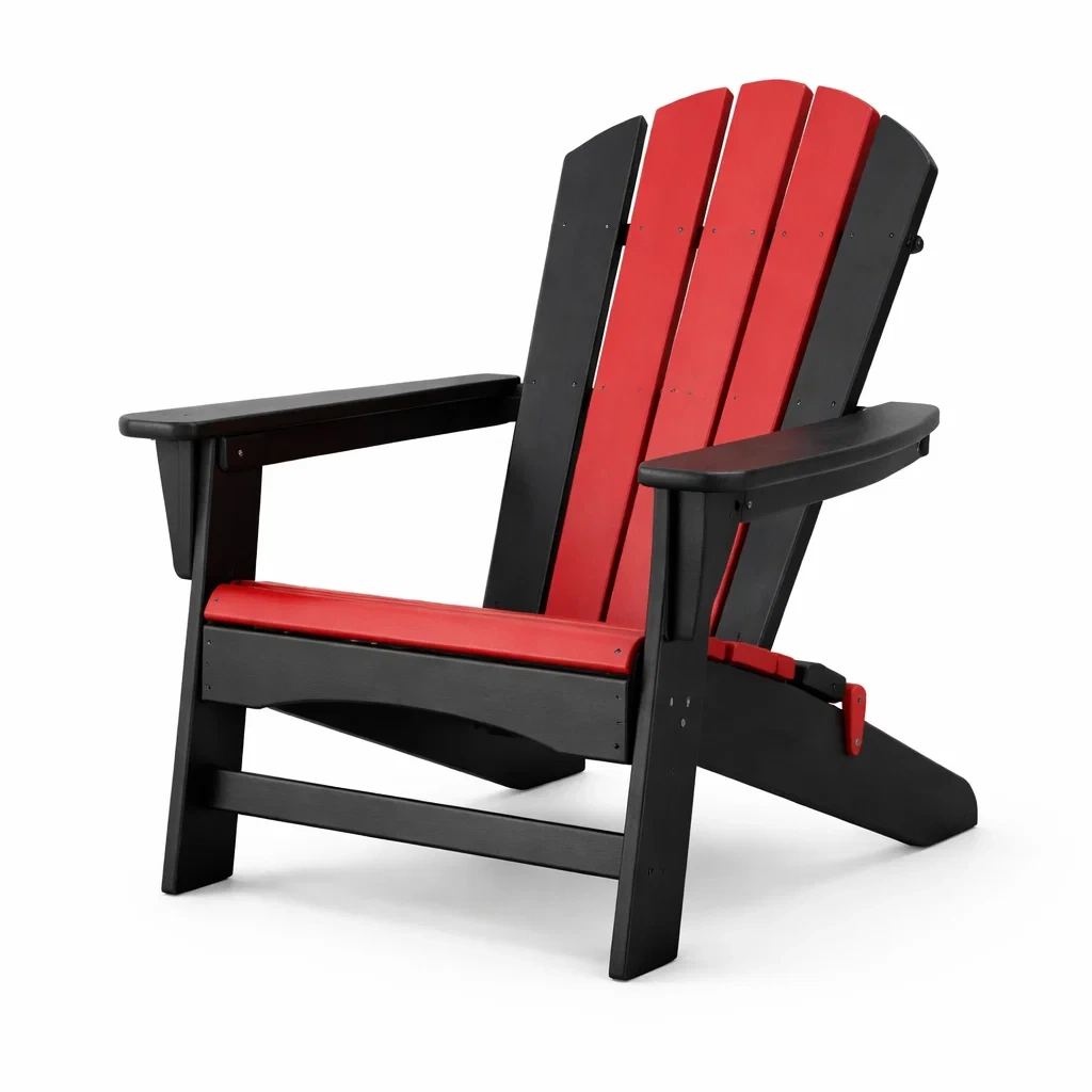 Chaise adirondack en plastique rouge et noir pour extérieur