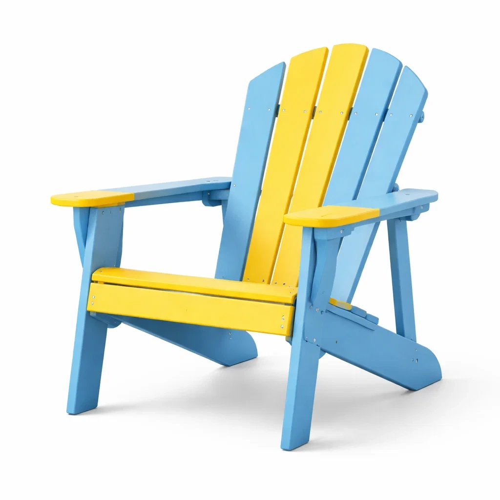 Chaise adirondack en plastique bleu et jaune pour extérieur