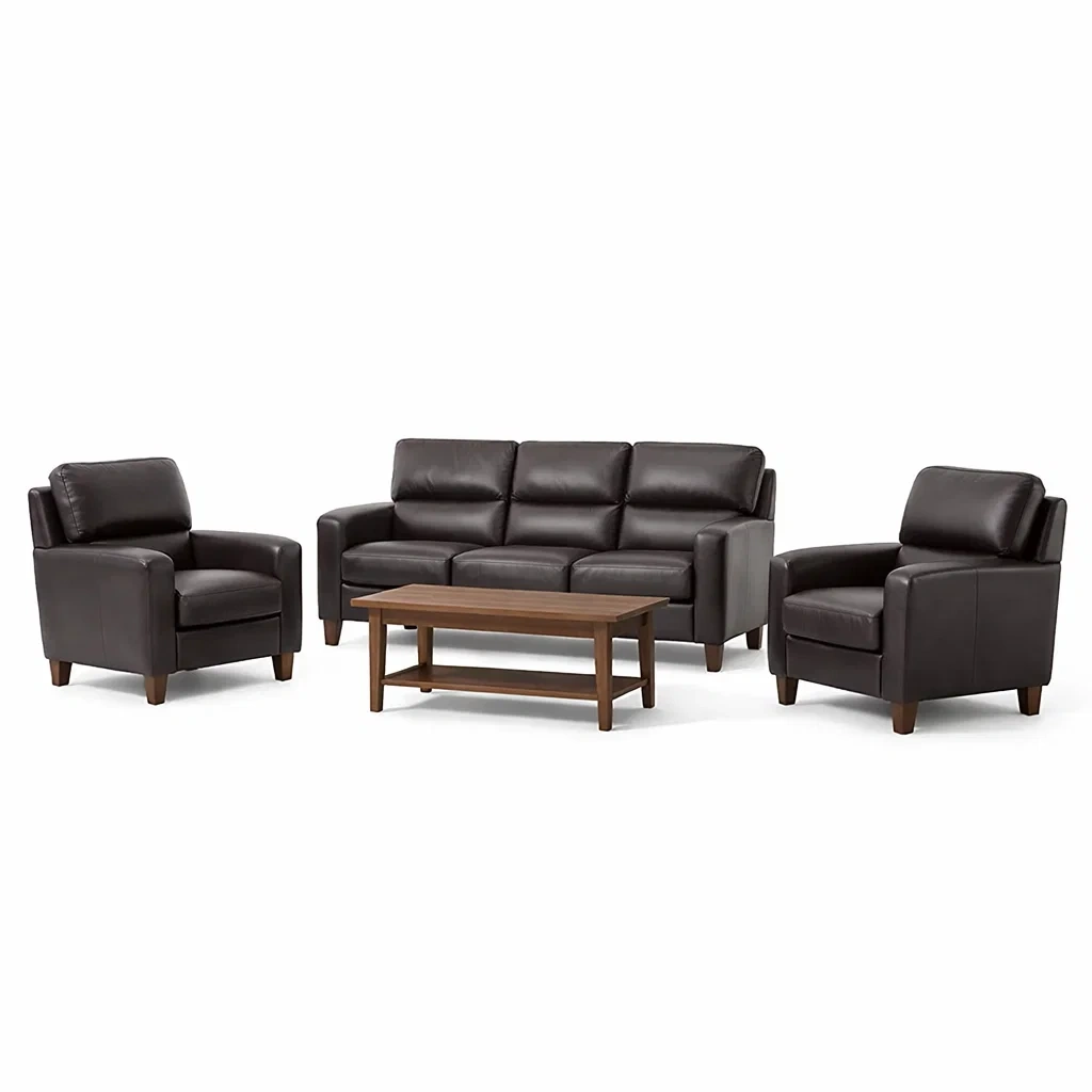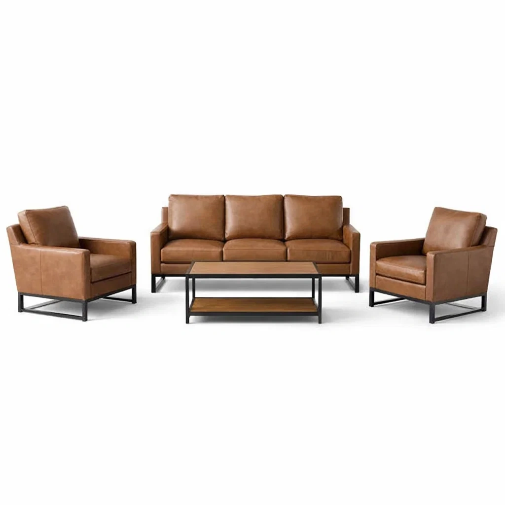 Ensemble de canapés en cuir marron avec canapé trois places et fauteuils