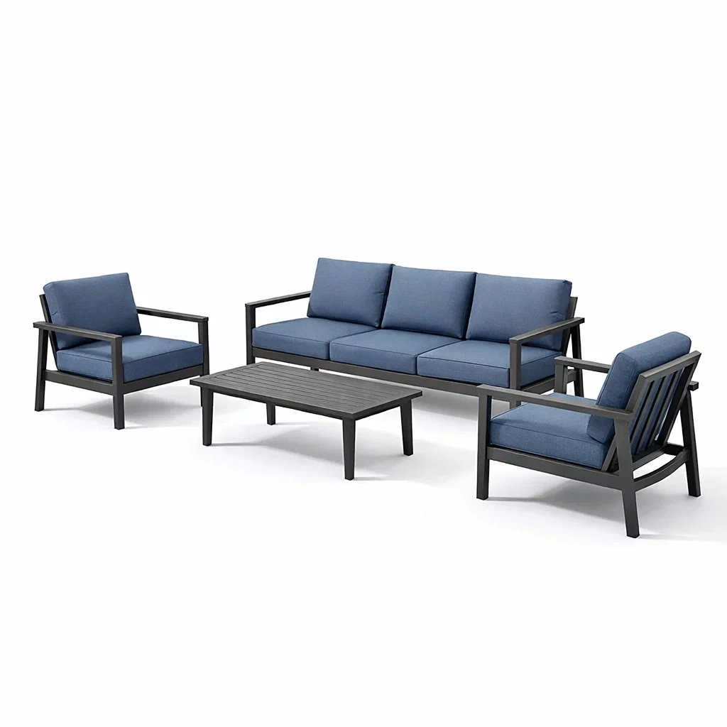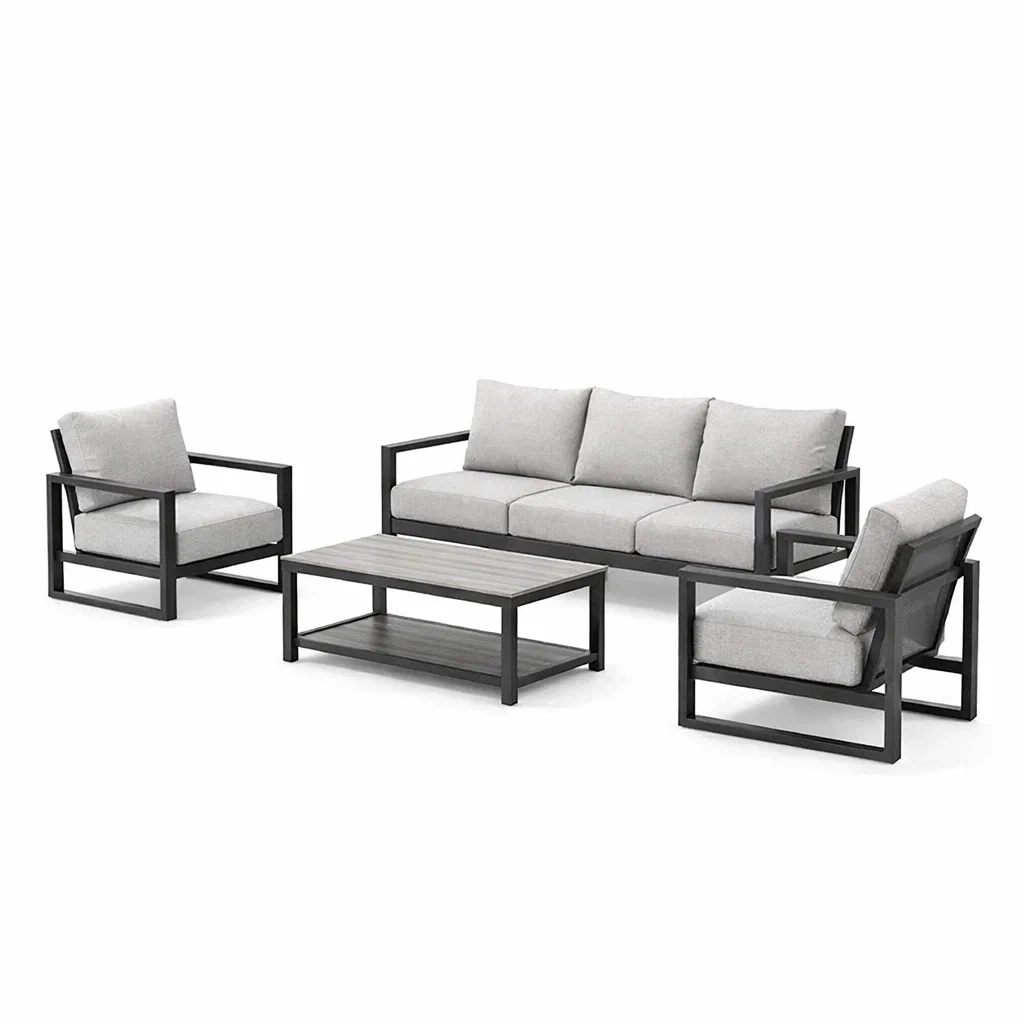 Ensemble de canapés en aluminium avec coussins en polyester gris