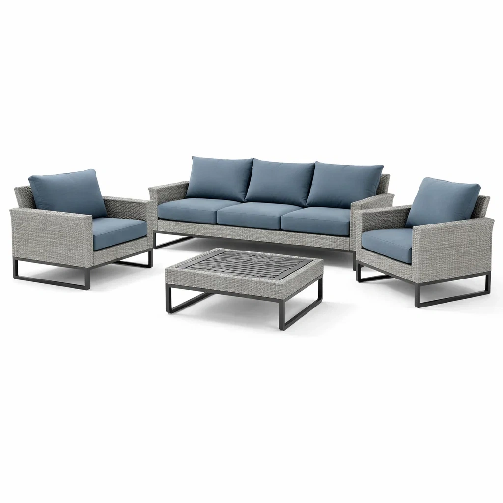 Ensemble de canapés de jardin en résine tressée gris avec coussins bleus