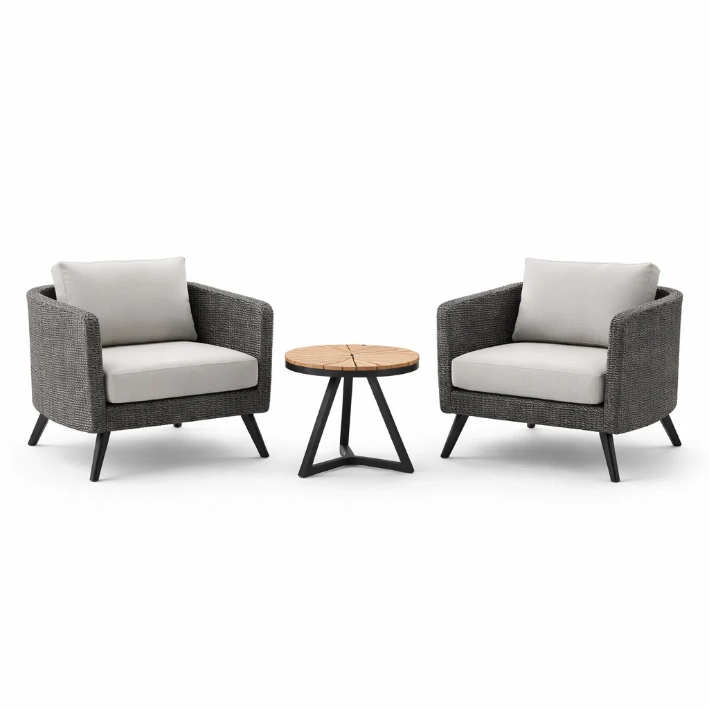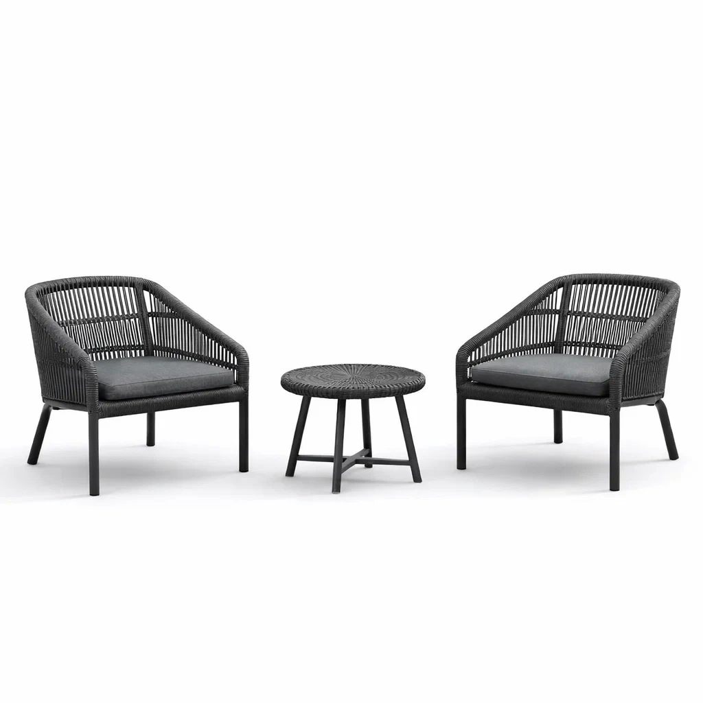 Ensemble de détente en aluminium noir et corde avec fauteuils et table ronde