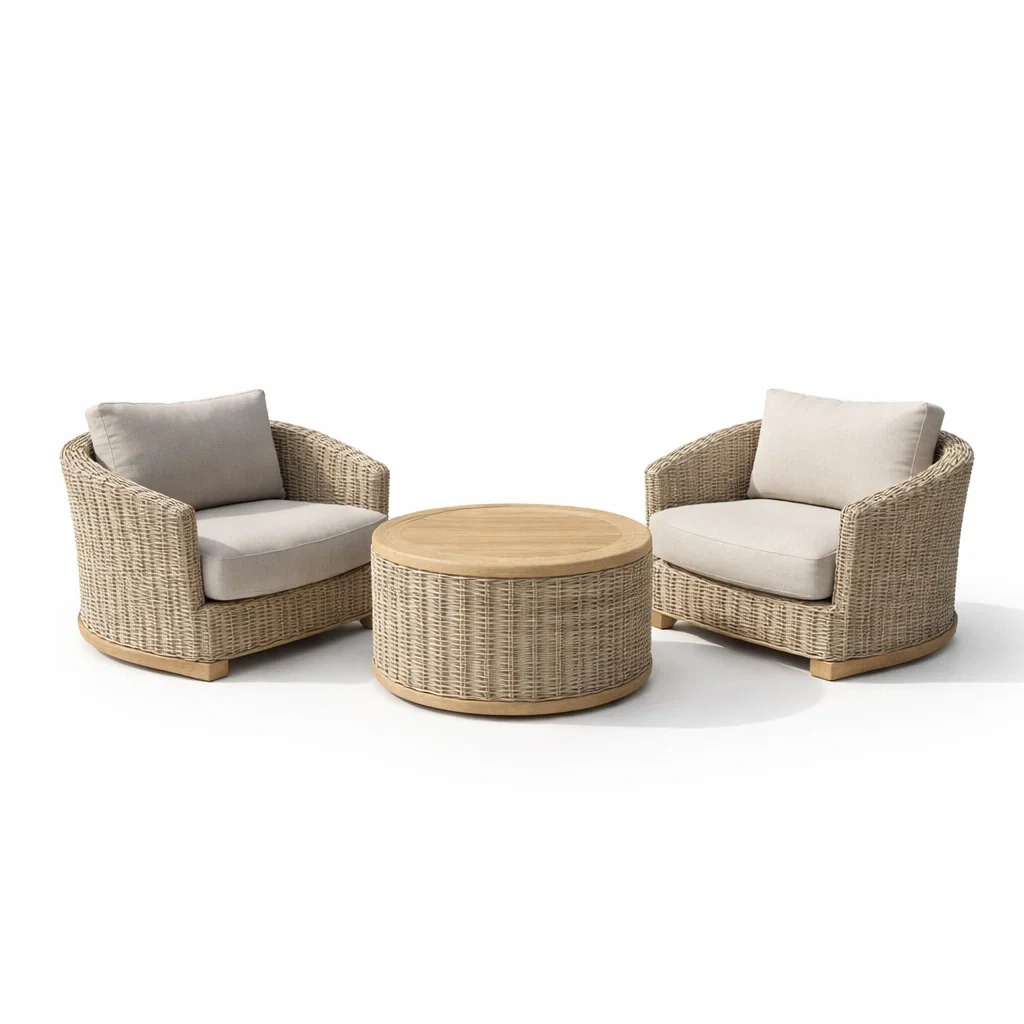 Ensemble de détente en résine tressée avec chaises pivotantes et table