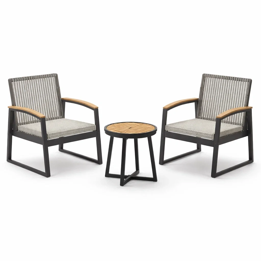 Ensemble de détente en aluminium avec table et fauteuils en cordon noir