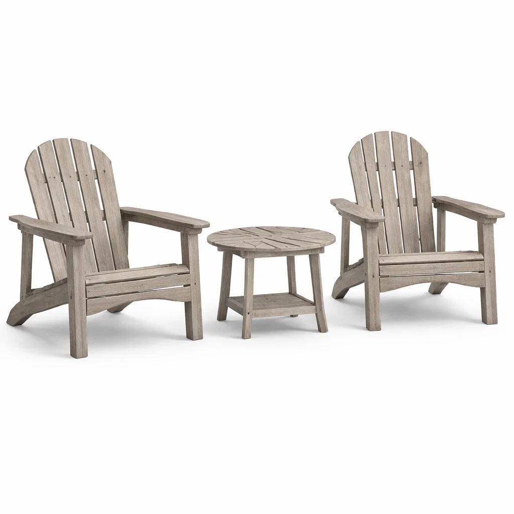 Ensemble de détente en bois d’acacia gris avec table et chaises adirondack
