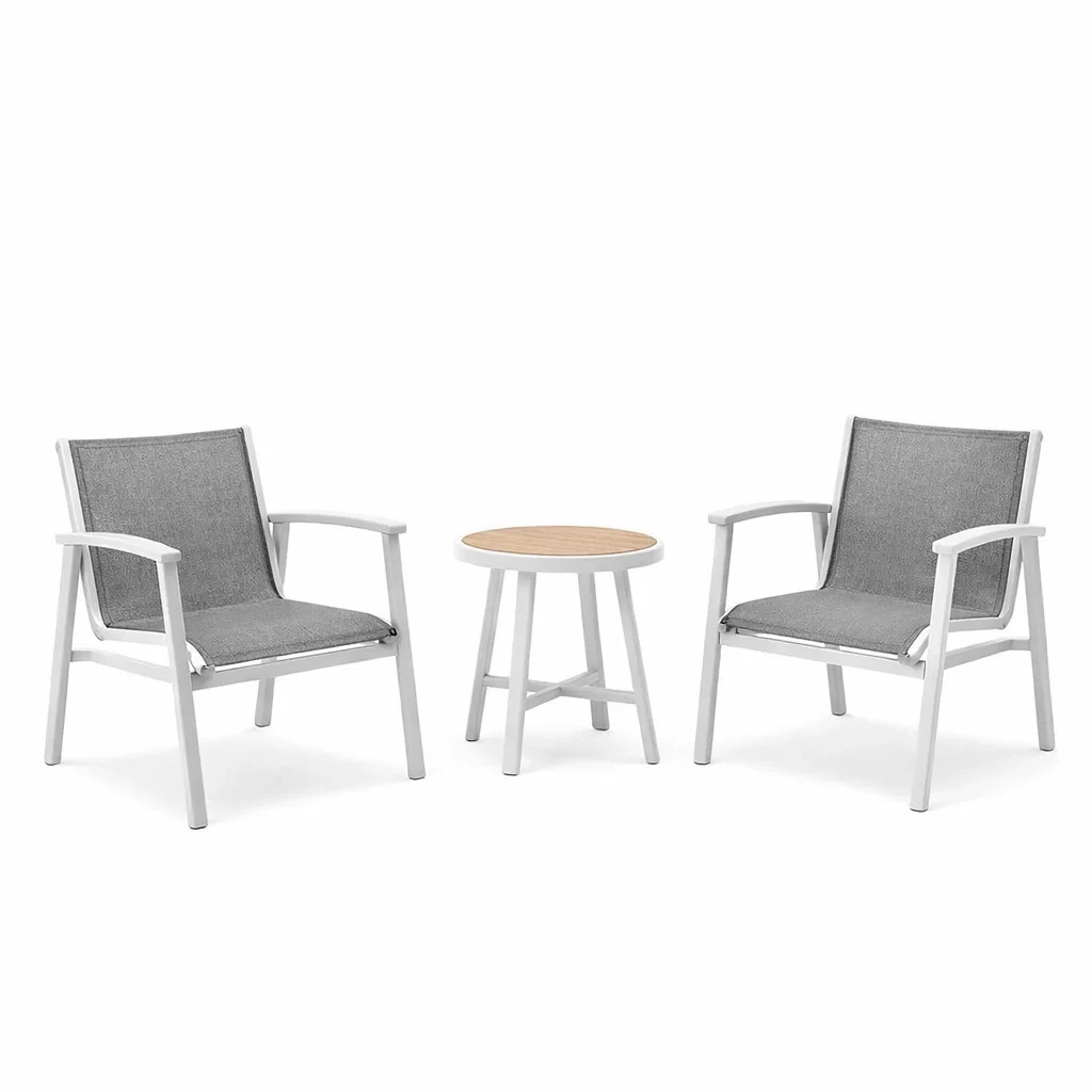 Ensemble de détente en aluminium gris avec fauteuils et table