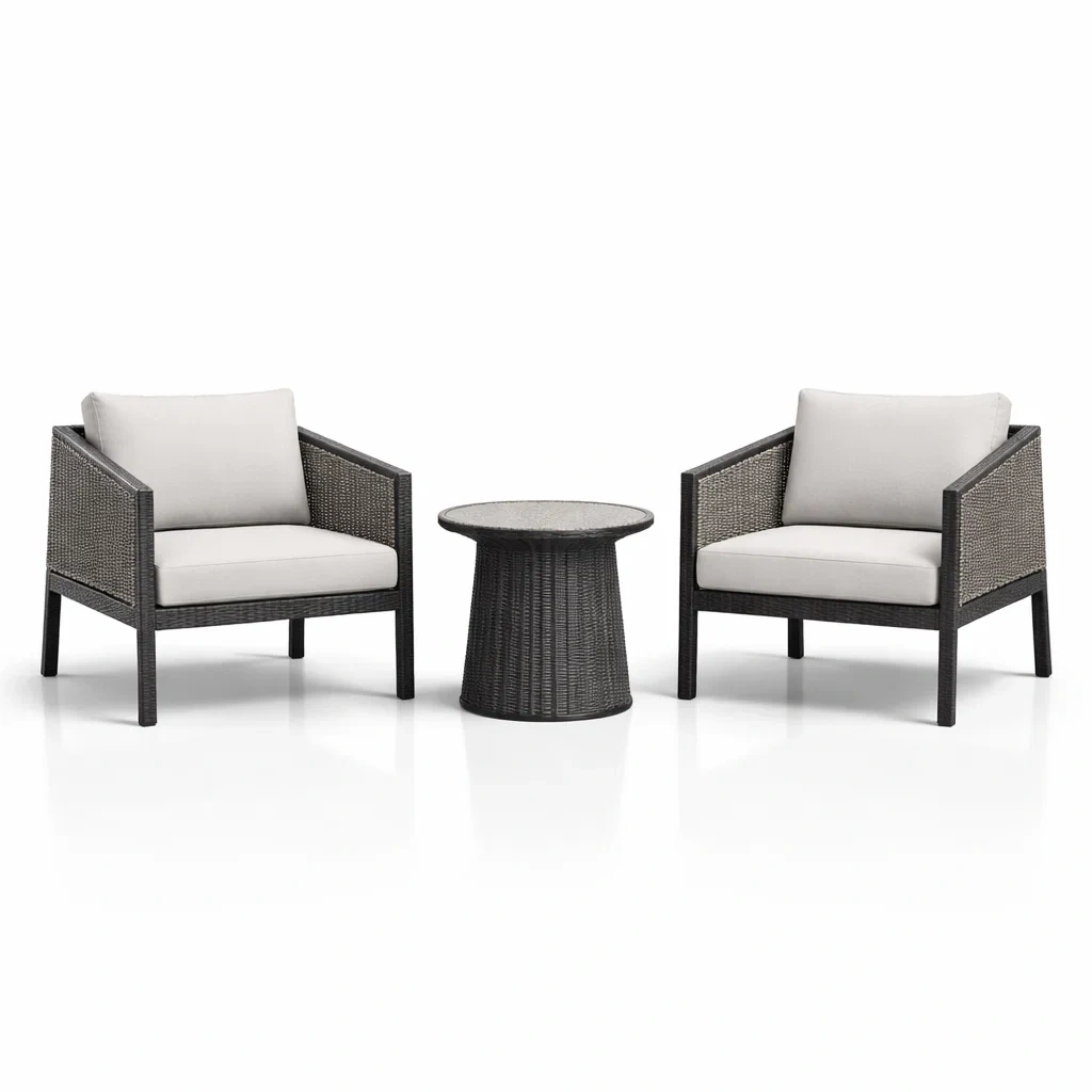 Ensemble de détente en résine tressée et métal avec chaises et table