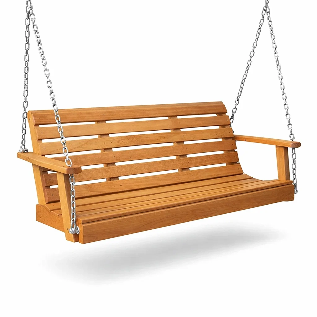 Balancelle de porche en bois avec chaînes en acier inoxydable