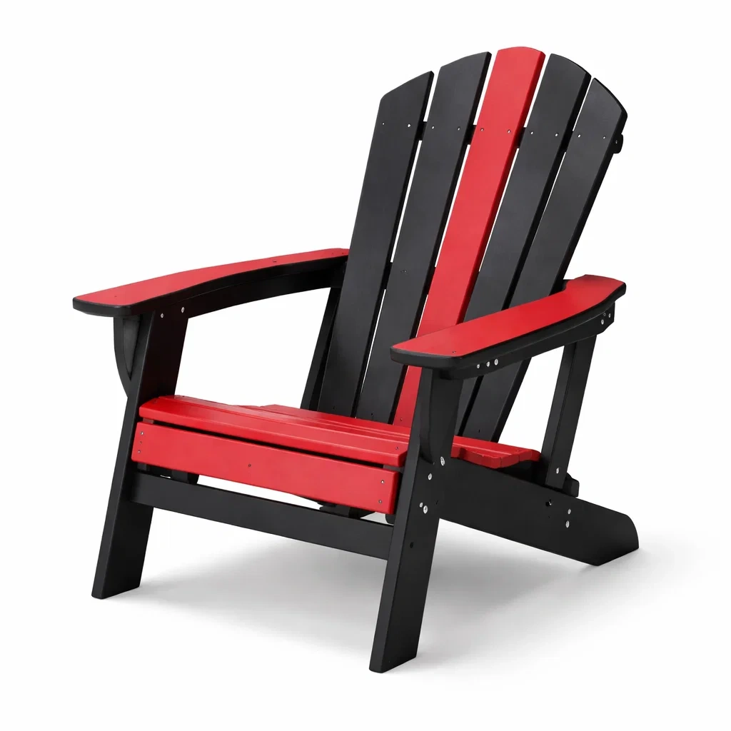 Chaise adirondack en plastique rouge et noir pour extérieur