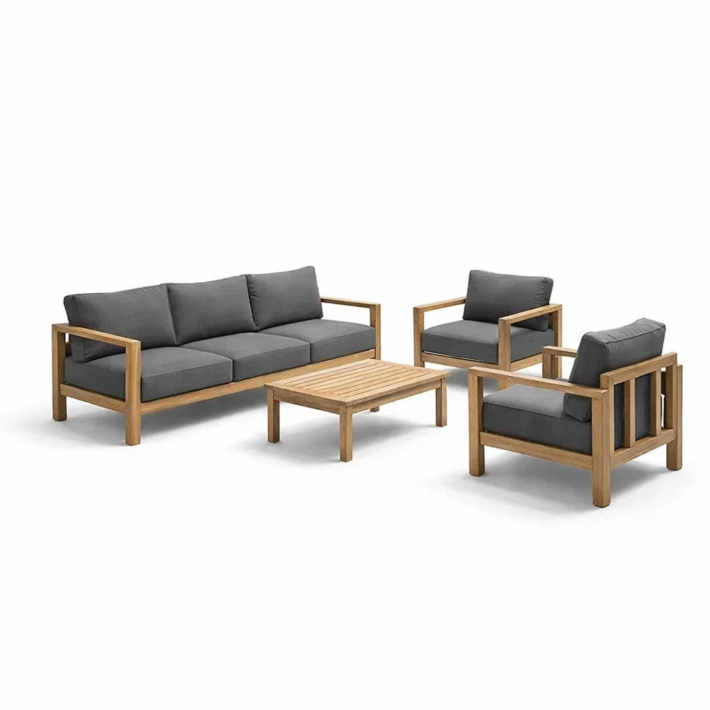 Ensemble de canapés de jardin en bois avec coussins en polyester gris