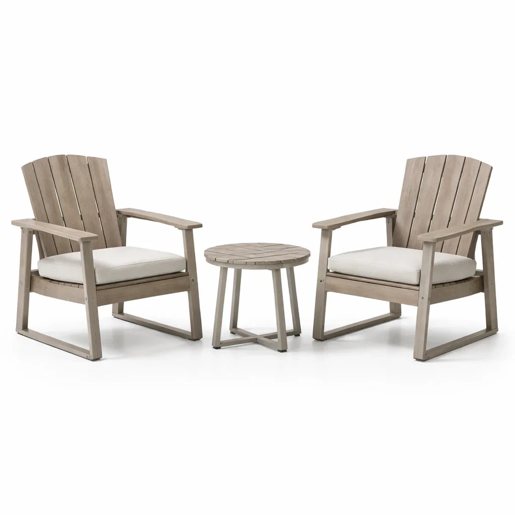 Ensemble inclus : 2 chaises, 1 table basse. Résiste aux intempéries. Utilisation pour extérieur. Nettoyer avec un chiffon humide.
